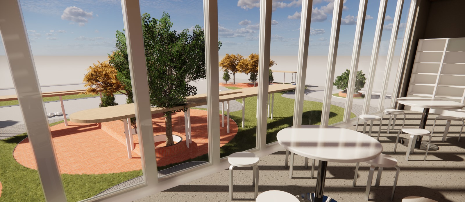Ein Park mit Versammlungs- und Sitzmöglichkeiten sowie ein Café laden zum Austausch ein. Unternehmen stellen Roboter, Computer und weitere notwendige Technik zur Verfügung, um großartige Projekte und Entwicklungen zu ermöglichen.